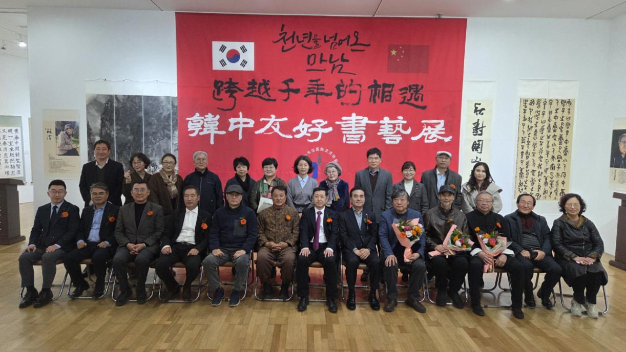 11月26日至30日,与韩中书法国际交流协会、驻济州中国总领馆联合举办“跨越千年的相遇一一中韩友好第六回书画展览”,展览在韩国济州国际和平中心举办,驻济州中国总领事陈建军、韩中书法国际交流协会会长崔在圭、西归浦市市长吴顺文,韩国著名书法家姜京勲、姜旬萓、金英熙及1000多名观众出席展览。驻济州中国总领事陈建军说,书法是两国文化艺术共同的瑰宝,在推动两国友好交流方面发挥着独特而重要的作用。济宁在一千年前的北宋亦称济州,与今天韩国济州道有今古同名之缘,可称得“跨越千年的相遇”,又为中韩文化交流增添了光彩。 |